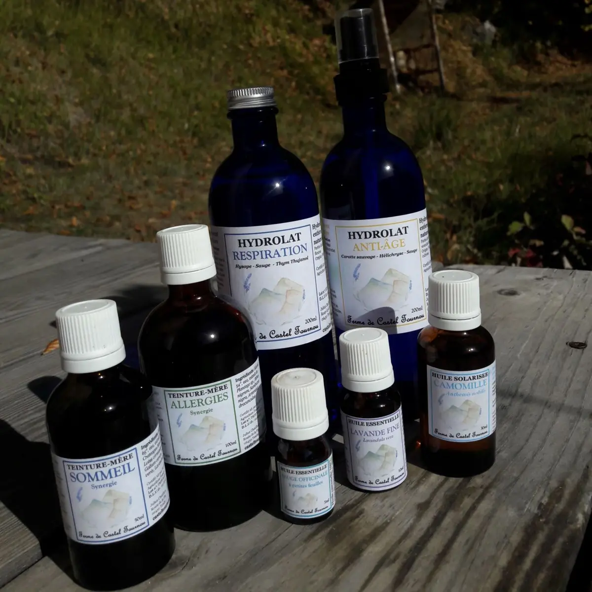 Produco oli essenziali, idrolati, oli vegetali solarizzati e liquori. Le piante utilizzate per questi preziosi rimedi sono coltivate interamente a mano e raccolte nelle immediate vicinanze.