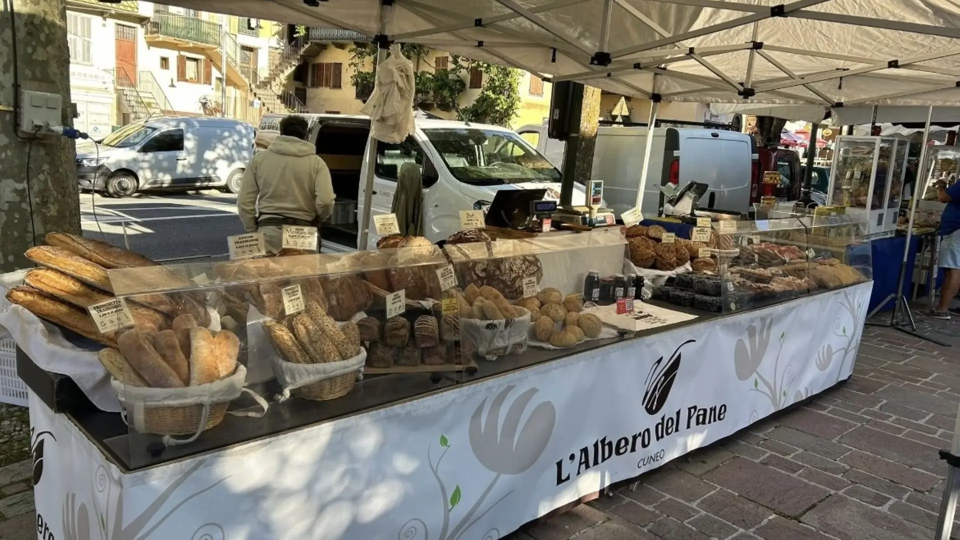 Godetevi il pane fresco nei giorni di mercato a Tenda con l'Albero del Pane, il nostro panificio itinerante unico nel suo genere, un concetto di attività mobile che compensa la chiusura settimanale del panificio del paese.