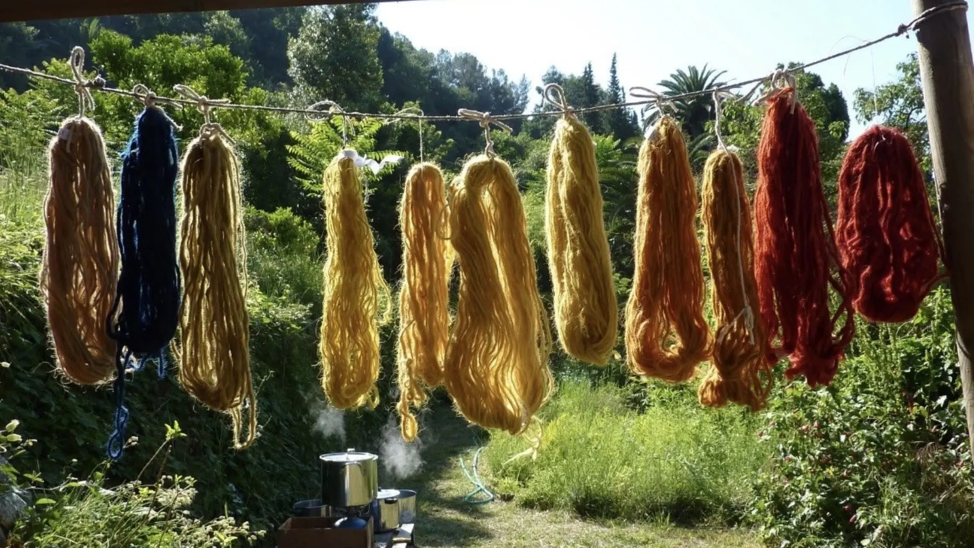Tintura vegetale con pigmenti vegetali: garence, fustet, cosmos, ecc. su lana o seta.